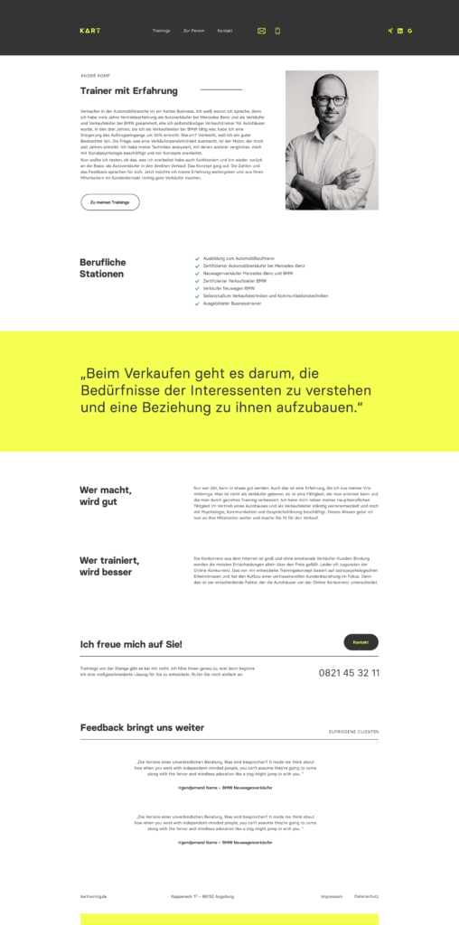 Für André Komp und sein Start-Up haben wir die Website sowie den Markenauftritt gestaltet.