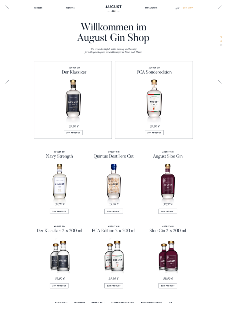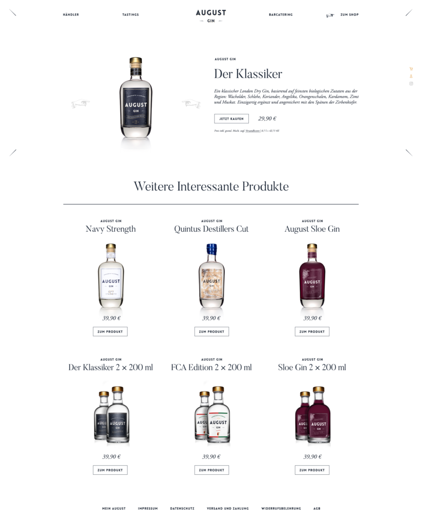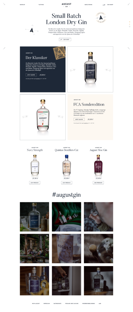 Für AUGUST Gin haben wir schon einiges gemacht. In diesem Jahr haben wir die Website und Webshop des Gins einem Redesign unterzogen.