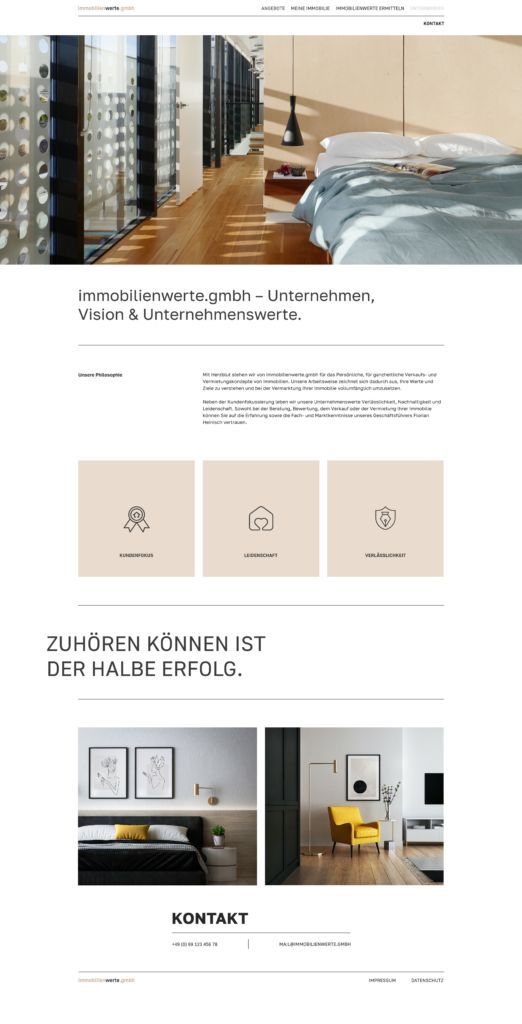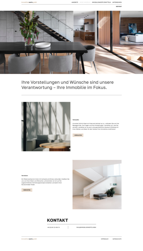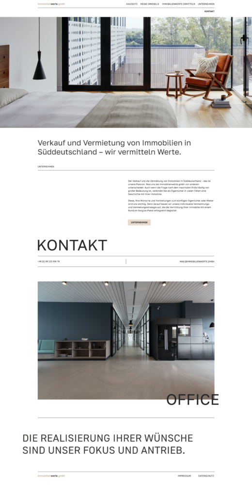 Die immobilienwerte.gmbh ist ein junges Unternehmen, das sich auf den Kauf, Verkauf und die Vermietung von Immobilien im Süddeutschen-Raum spezialisiert hat. Wir haben für den immobilienwerte.gmbh Markenauftritt die Website und das Corporate Design beigesteuert.